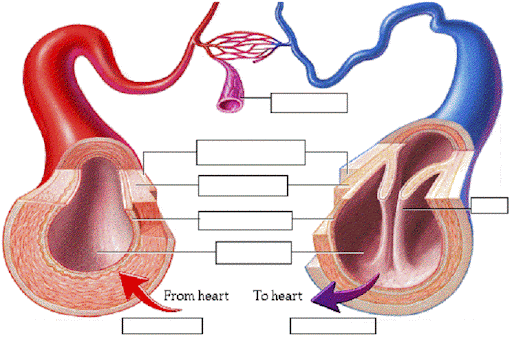 The hollow place inside of the blood vessel is called the lumen. The most important types, arteries and veins, carry all blood vessels have the same basic structure. These keep the blood flowing the right direction by closing if any blood tries to flow backwards. Blood vessels are hollow tubes that blood flows through. The arteries and veins on the vessel man model note that pulmonary arteries and veins are colored by type in the labels but colored red or blue based on oxygenation on the model itself.